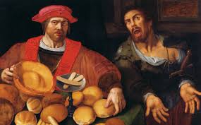 De kinderen van het licht, de christenen, zijn niet op materiële dingen uit: ze zijn uit op liefde tot God, liefde tot de naaste en ze willen toch het eeuwig leven bereiken. Maar doen ze dat wel planmatig? Doen ze het met net zoveel overleg als de onrechtvaardige rentmeester? Dat zou Jezus willen. En als Hij om zich heen kijkt, ziet Hij dat dat niet zo is. Net als de profeet Amos in de eerste lezing: die ziet die vrome Joden, die zeggen eer te willen geven aan God en volgens Gods wet te leven. Ze houden keurig de sabbat en de feesten. Dan zijn ze heel braaf, maar ondertussen denken ze al: als de sabbat voorbij is en mijn handeltje begint weer, dan moet ik zien hoe ik mensen een poot uitdraai en mijn zakken vul met geld. Dat klopt niet met elkaar.